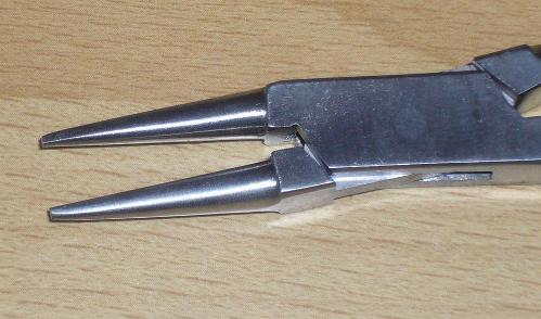 Rundzange klein aus Edelstahl mit dünnen kurzen Spitzen 1,5/5,0 und 23 mm lang